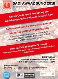 The annual Sadi Awaz Suno (Listen to our Voices) Women’s Conference took place on Thursday 20th September at the Woodville in Gravesend. The main ethos… Continue reading Women’s Conference a Great Success